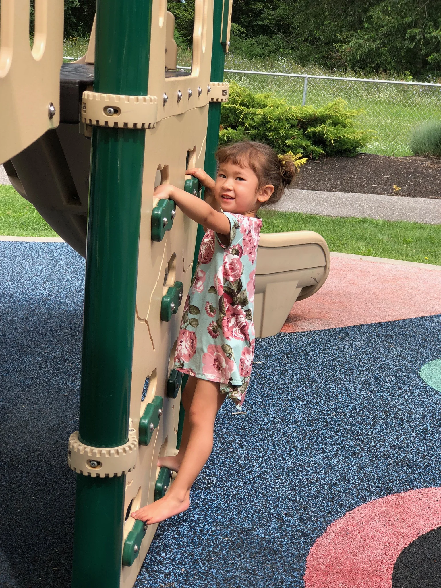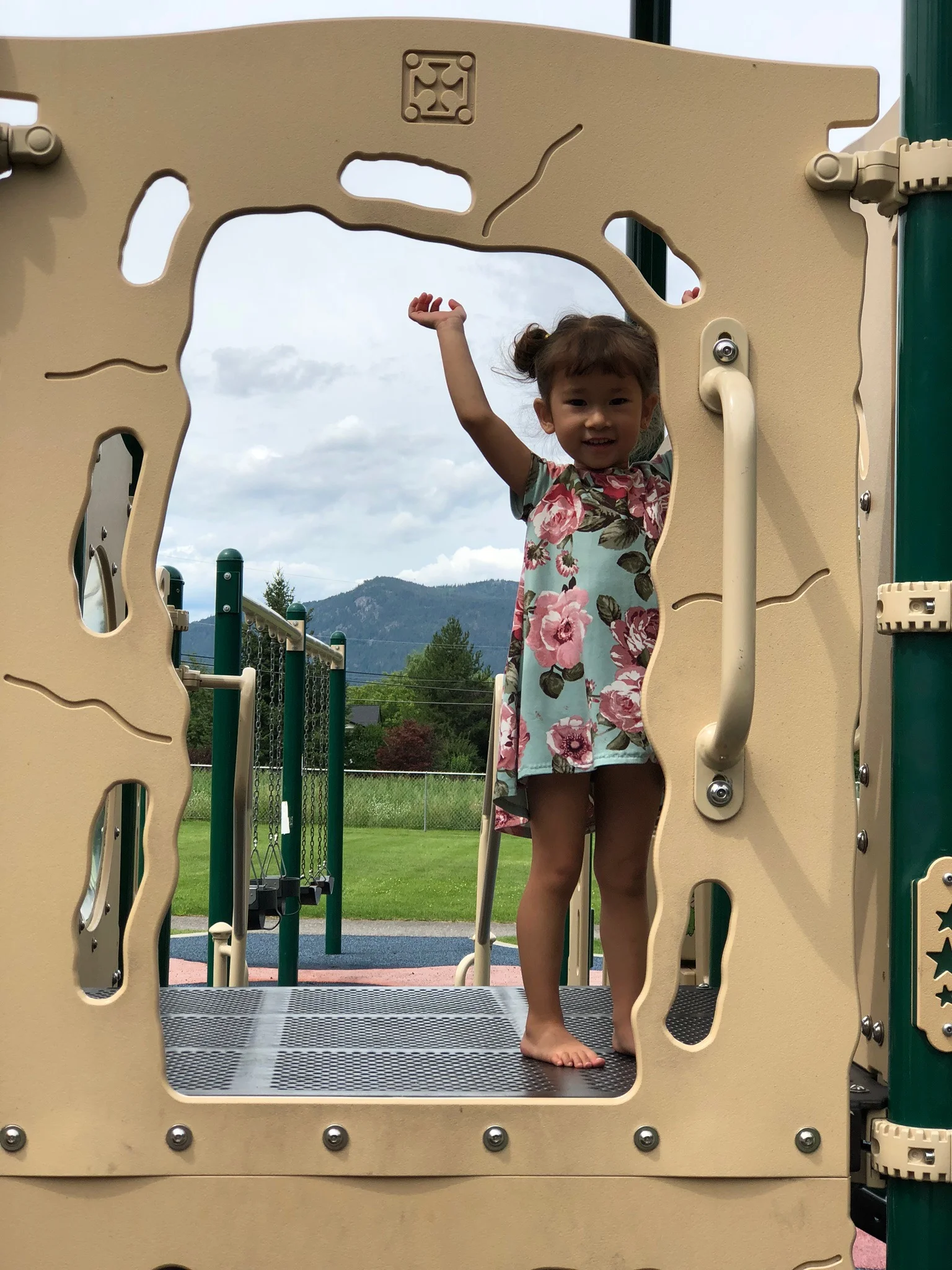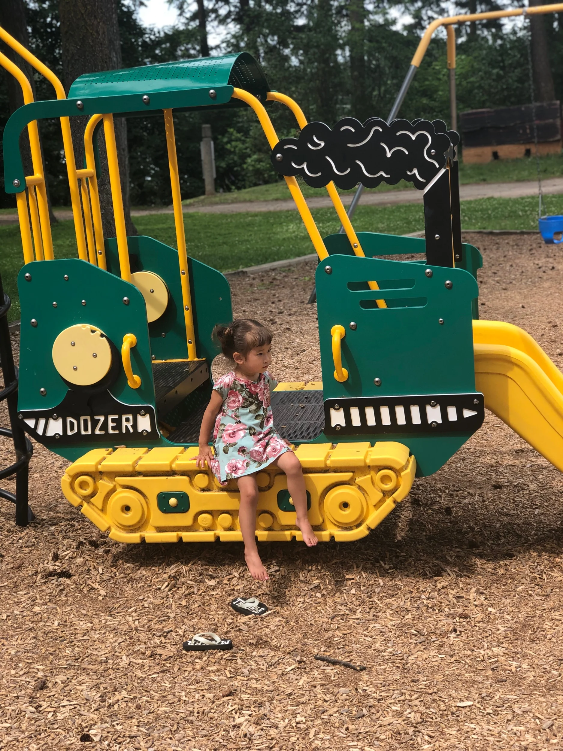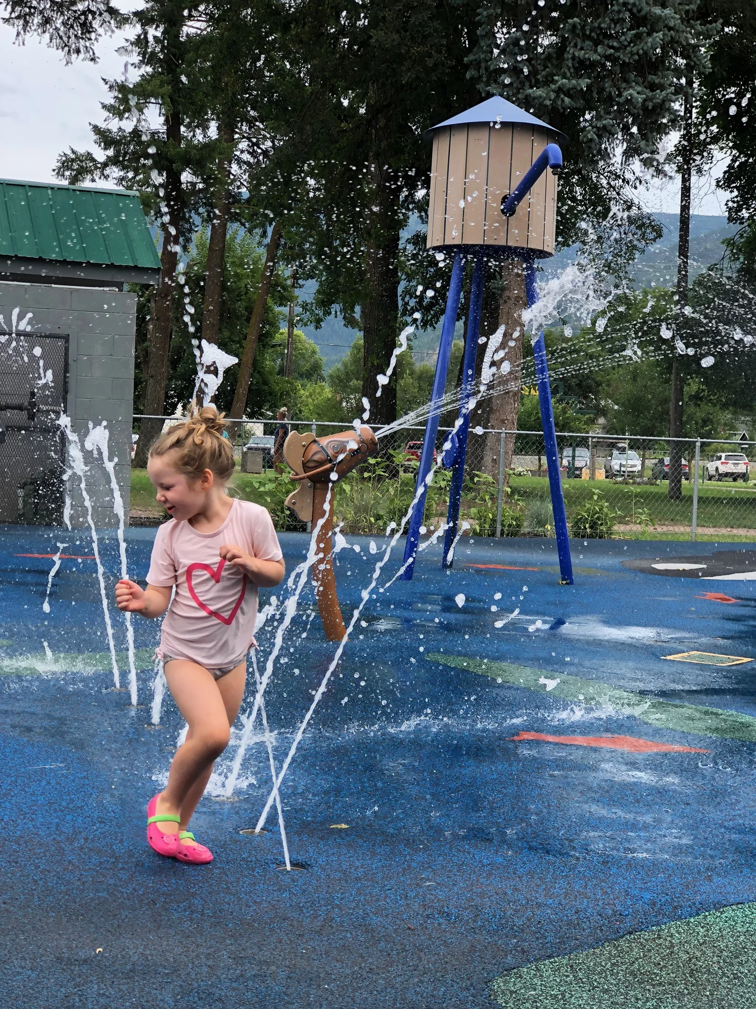 One of the absolute best parks around! You feel like a little fairy in an enchanted forest. Big trees, music playing, playground, outdoor exercise equipment, splash pad and pool.