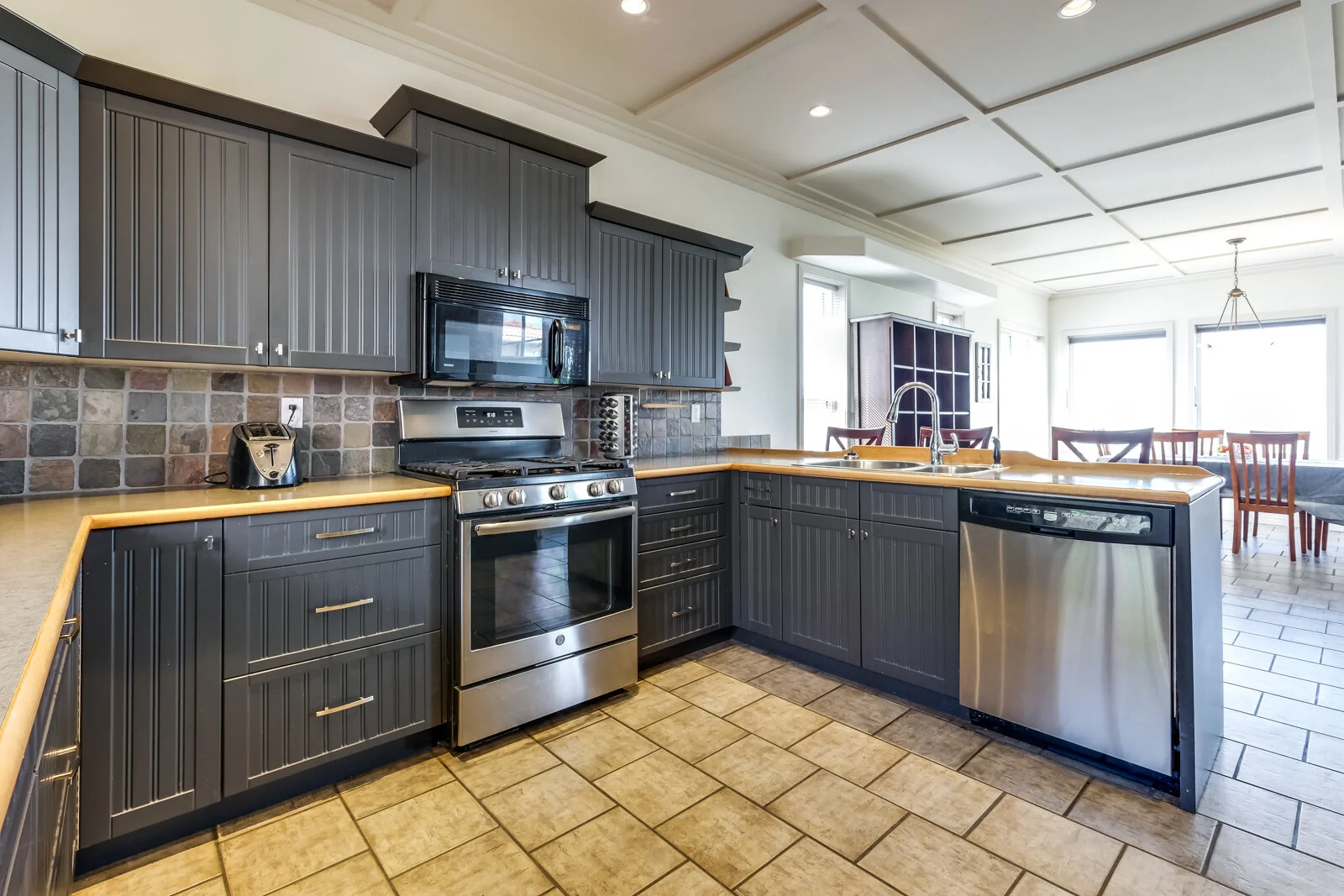 Showing off her lengthy windows, this girl has some extra height in the living room with a lofted upper floor and double-sided fireplace. Her kitchen has undergone a few “procedures” making her appear even younger and fresher than most of the other girls on the block. On her backside, you’ll find things to be flat in all the right places and well manicured.